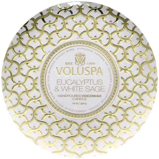Maison Blanc Collection 3 Wick Tin Candle - Eucalyptus and White Sage by Voluspa for Unisex - 12 oz Candle