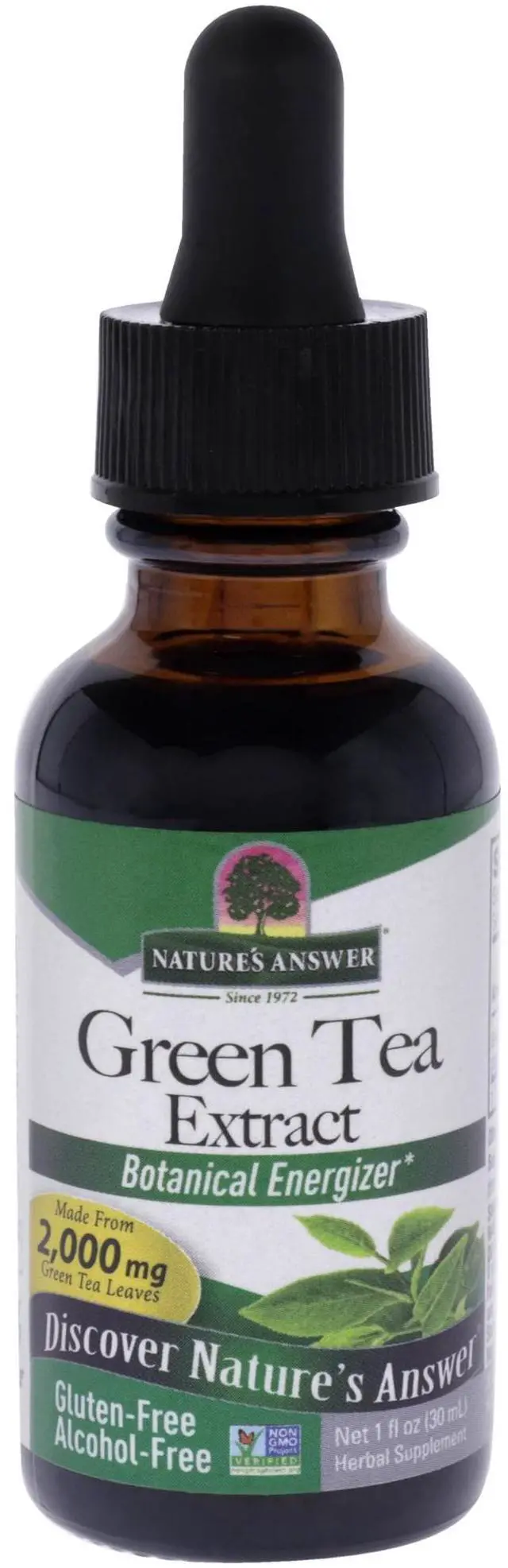 Natureâs Answer Green Tea extract is an exceptional way to enjoy the naturally healthy benefits of green tea. Super concentrated, made from 2, 000 mg of green tea leaves. Itâs all natural, a rich source of antioxidants. Antioxidants are important in helping to support the immune system. It is also an excellent source of polyphenols that include beneficial catechins and EGCG. Natureâs Answer Green Tea is a botanical energizer, naturally supporting healthy energy levels. It contains absolutely no preservatives, and itâs gluten-free and alcohol-free, so you can feel good adding it to a cup of hot water, a glass of juice, or even mixing it into a smoothie.