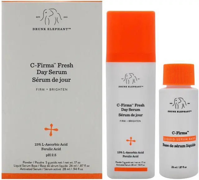 C-Firma Fresh Day Serum by Drunk Elephant for Women - 2 Pc 1.11oz Day Serum, 0.87oz Liquid Serum Base