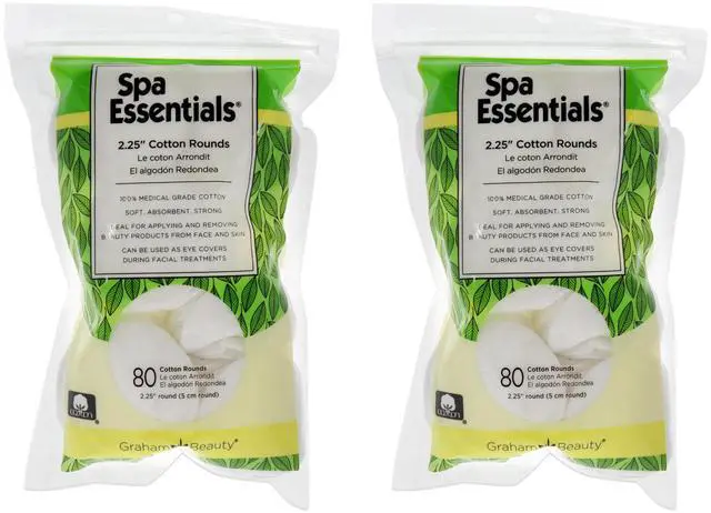 Cotton Rounds - 2.25 by Spa Essentials for Women - 80 Count Cotton Pads - Pack of 2