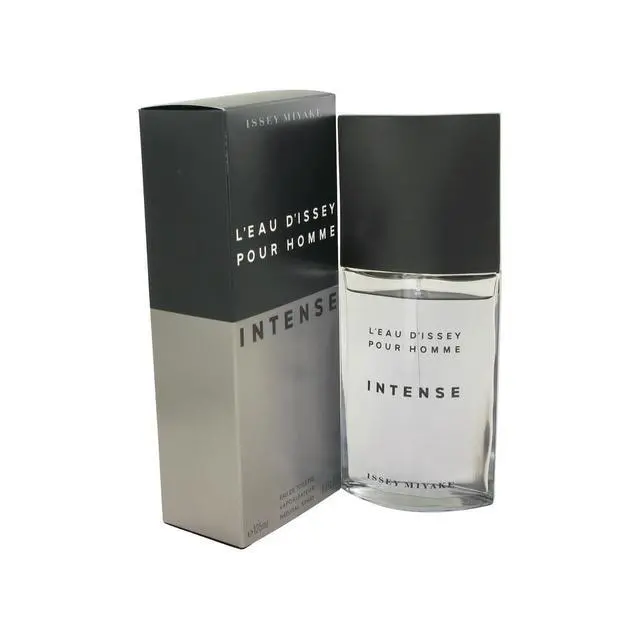 L'eau D'Issey Pour Homme Intense by Issey Miyake Eau De Toilette Spray 4.2 oz for Men A woody fragrance for men, created by perfumer Jaques Cavallier to appeal to contemporary men. Top notes bring sweet and fresh waves of tangerine, bergamot, yuzu and orange. Heart notes create rhythm of blue lotus, camphor, cardamom, cinnamon and saffron, together with nutmeg, while base notes finish the composition with accords of incense, amber, benzoin, papyrus and grey amber.