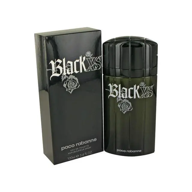 Black XS by Paco Rabanne Eau De Toilette Spray 3.4 oz for Men Introduced in 1993 by Paco Rabanne Black XS is a masculine scent that opens up with Mint, Corainder and bergmot. The middle notes include, Juniper berry and wild flowers, finishing off with sandalwood,musk and cedarwood. Black XS is recommended for evening wear.