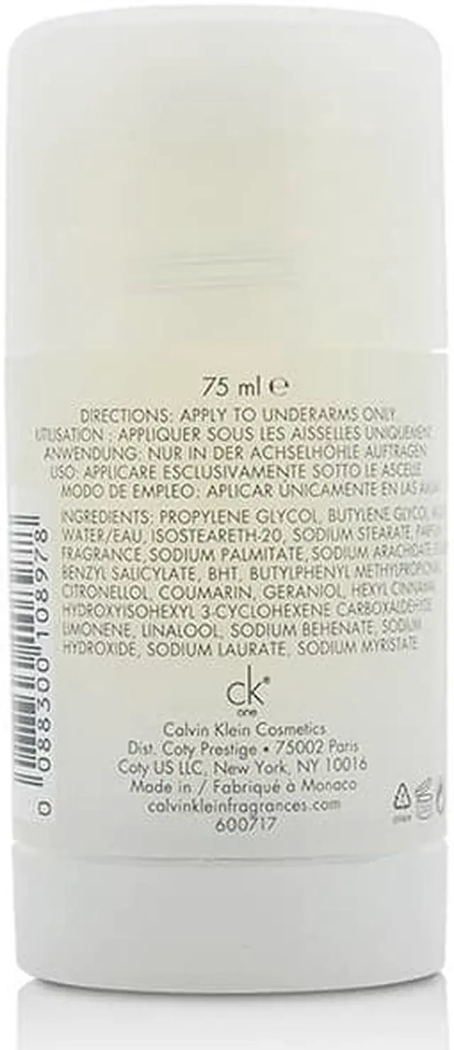 Calvin Klein C.K. One - 2.6 oz. Brand New. . Launched by the design house of Calvin Klein in the year 1994. This deodorant stick has a blend of papaya, pineapple, jasmine, green tea, and amber. It is recommended for daytime wear.. C.K. One