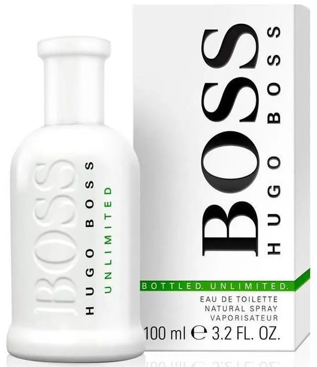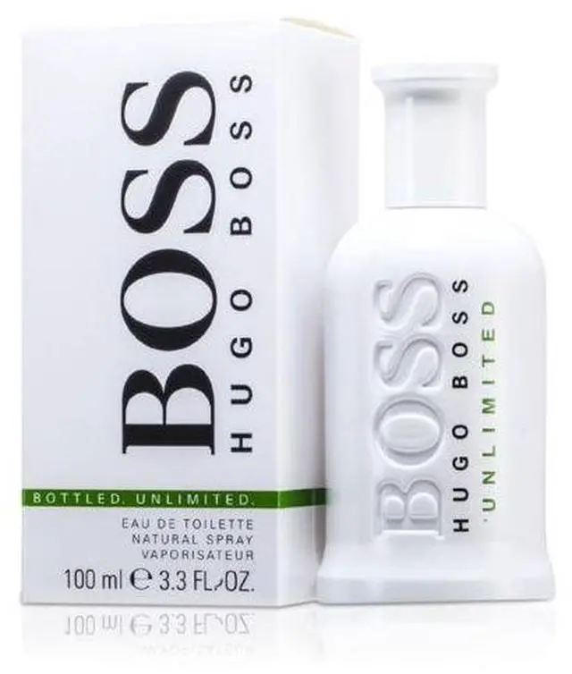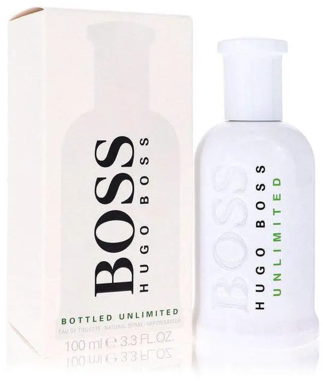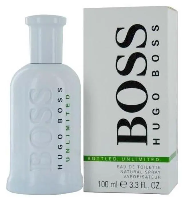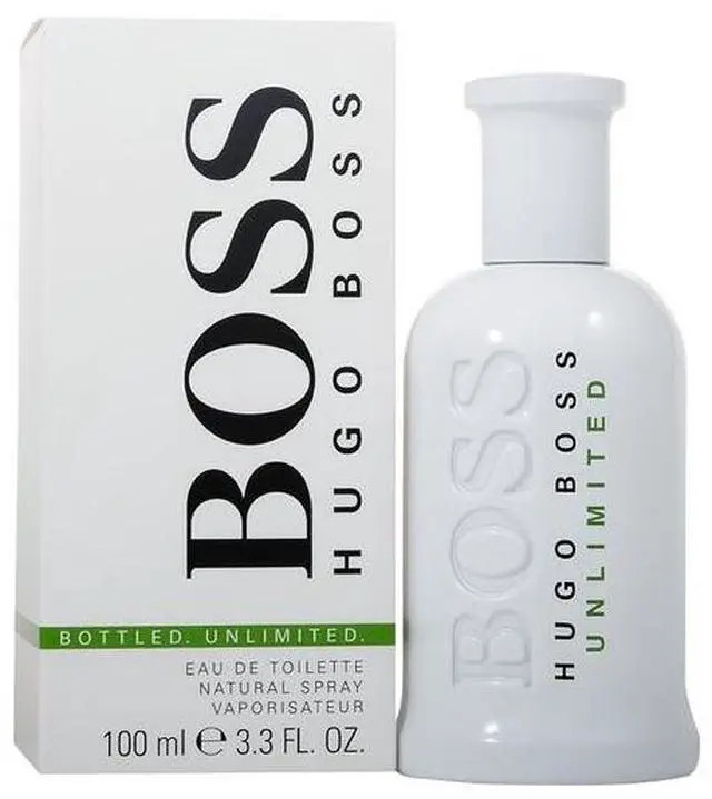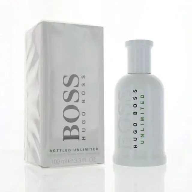Hugo Boss Boss Bottled Unlimited - 3.3 oz. Brand New. . Launched by the design house of the Hugo Boss in the year 2014. An aromatic fougere fragrance crisp, sweet, juicy, warm and enlivening, mint, grapefruit and violet leaves, pineapple, cinnamon and rose, labdanum, sandalwood, and amber notes.. . Boss Bottled Unlimited