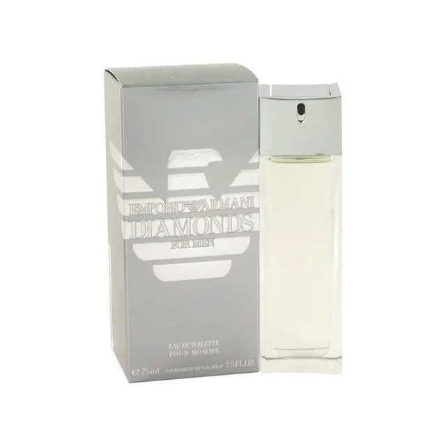 Emporio Armani Diamonds by Giorgio Armani Eau De Toilette Spray 2.5 oz for Men Introduced on the market in August 2008. Its bottle was designed by Giorgio Armani himself, and it has a square-shaped bottle like a square-cut diamond. It contains gourmet-woody aromatic juicy, with an unusual gourmet reversal in the top notes. The perfume opens with sparkling, sweet aromas of bergamot, with Guaiac, vetiver, cedar, Szechuan pepper, cocoa and ambroxan.