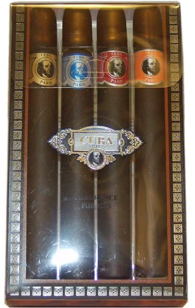 This Cuba 'Cuba' fragrance set features a masculine blend of woods, jasmine and a hint of bergmot. This four-piece fragrance set includes Cuba Gold, Cuba Blue, Cuba Red and Cuba Orange.