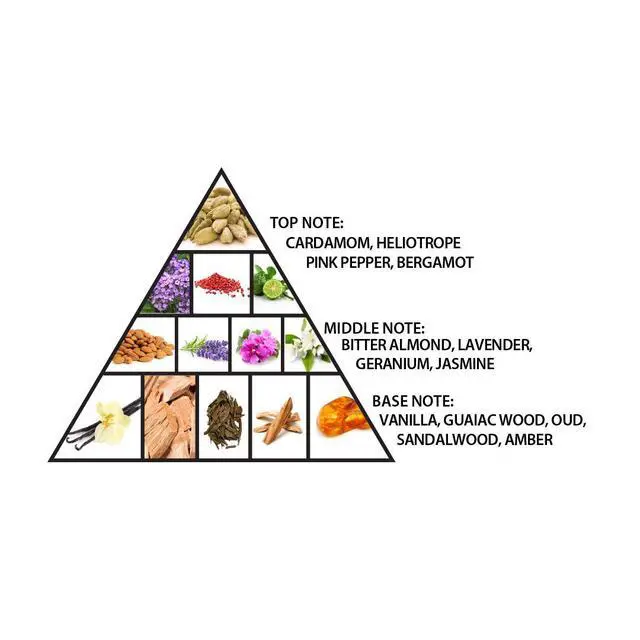 Belonging to the Amber Woody fragrance family, this scent opens with an invigorating burst of top notes, including the spicy warmth of pink pepper, the soft sweetness of heliotrope, the freshness of bergamot, and the aromatic richness of cardamom. As the beautiful aroma unfolds, the heart notes reveal a floral bouquet of calming lavender, vibrant geranium, and the exotic allure of jasmine, creating a harmonious blend that enchants the senses.