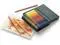 White, Cadmium yellow, Dark cadmium orange, Deep scarlet red, Magenta, Light ultramarine, Phthalo blue, Emerald green, Light green, Burnt ochre, Walnut brown, Black, Light yellow glaze, Dark chrome yellow, Pale geranium lake, Dark red, helioblue-reddish, Ultramarine, Dark phthalo green, Earth green yellowish, Venetian red, Raw umber, Warm grey V, Warm grey II, Cream, Cadmium orange, Middle cadmium red, Rose carmine, Middle purple pink, Mauve, Dark indigo, Cobalt turquoise, Cobalt green, Leaf green, Pompeian red, Dark naples ochre