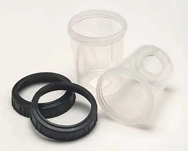 A hard cup that supports and holds the PPS mini flexible liner, part number 16114. If filled to the top, this cup will hold 6 fl oz.