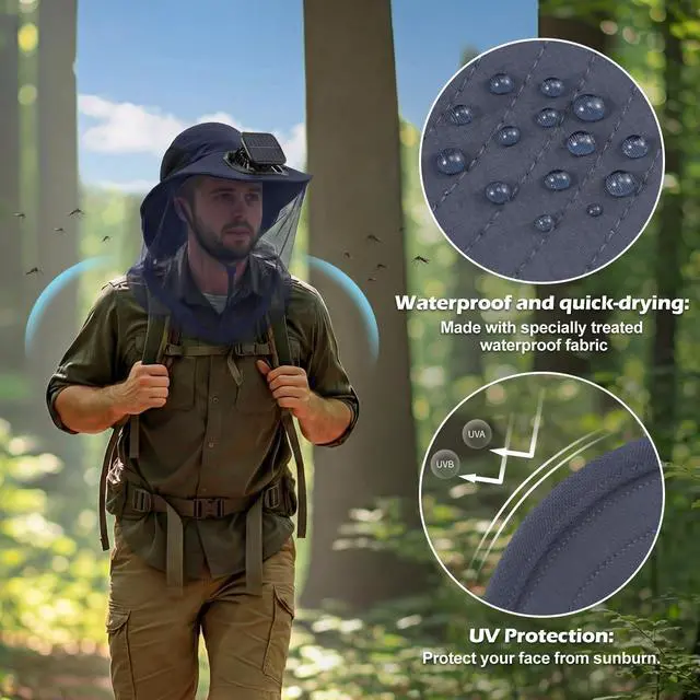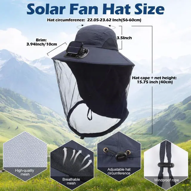Whether you're gardening, hiking, or attending a festival, this multi functional mosquito net hat is the ideal outdoor companion. It effectively protects against mosquito bites and hot weather, making this solar fan hat a must have for all adventure and nature enthusiasts