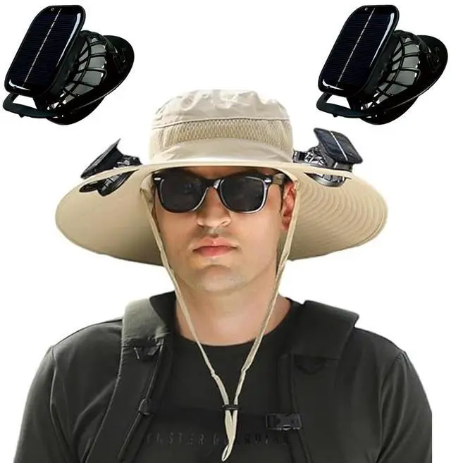 Solar Fan Hat,Wide Brim Solar Fan Outdoor Fishing Hat,Men Sun Hat with 2 Solar Fan Fishing Hats,3 Speed Adjustable Fans Hats (US, Alpha, One Size, Khaki)