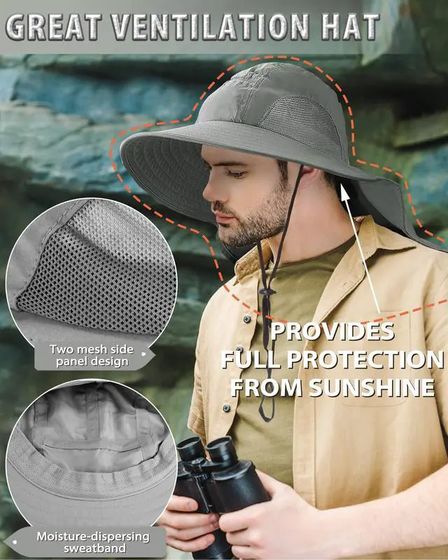 GREAT VENTILATION CAPS: Two mesh side panel design and moisture-dispersing sweatband greatly improves cooling and airflow, make your head and neck cool and comfortable all the time