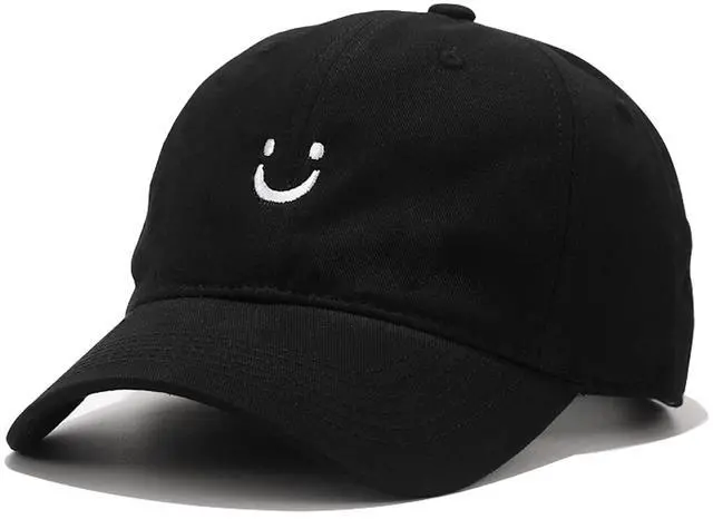 The smile face baseball cap make it easy to look good and cute while protect your face from the sun's harmful UVA and UVB rays, perfect for daily wearing and outdoor activities. Made of soft, breathable and comfortable cotton. And it is adjustable for a better fit, one size fits most women men and teens. Perfect for given as gift!