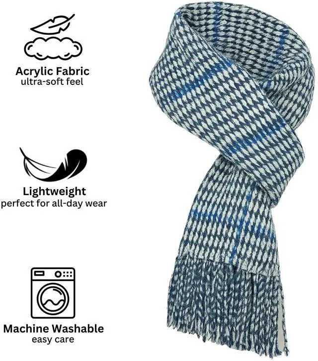 PREMIUM FEEL: Experience the remarkable softness of our finely knit scarf, designed to feel incredibly soft and luxurious against your skin. This premium acrylic material provides exceptional warmth and comfort without the itchiness or irritation, making it the perfect choice for all-day wear. Wrap yourself in a cloud of comfort and elevate your winter wardrobe with a scarf that feels as good as it looks.
