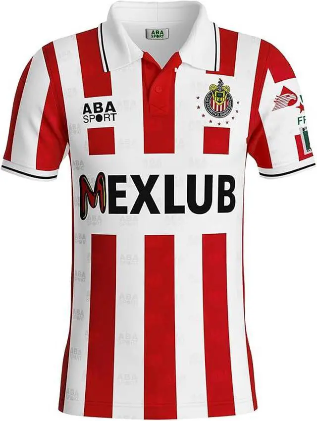 Revive uno de los capítulos más memorables del fútbol mexicano con esta Chivas Jersey correspondiente a la temporada 1994-1995. Su diseño clásico con franjas rojas y blancas, junto con el característico cuello tipo polo, representa fielmente el uniforme usado en cancha por el Club Guadalajara durante esa época.