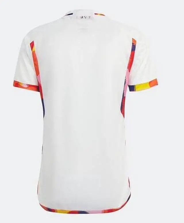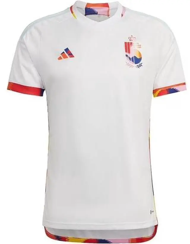 Show your support for Belgiums golden generation with this official away soccer jersey from the 2022/23 season, designed in a clean white base with vibrant multi-color detailing that celebrates modern Belgian style. This jersey delivers a sleek match-inspired look that stands out both on and off the field, combining performance technology with bold national pride. Crafted from lightweight, breathable fabric, it helps keep you cool and comfortable whether you're playing, training, or cheering from the stands. The moisture-absorbing material works to wick sweat away from your body, allowing for a dry feel even during high-intensity moments. The athletic cut offers a streamlined fit while still allowing full freedom of movement. The iconic Belgium crest is prominently displayed on the chest, symbolizing strength, unity, and passion for the game. Carefully stitched details and premium finishing ensure long-lasting durability through repeated wear and washes. The modern collar design and striking color accents give this jersey a contemporary edge that pairs easily with shorts, joggers, or casual streetwear. Inspired by what the players wore during international competition, this piece lets fans feel connected to their favorite team. Whether you're adding to your collection or gearing up for match day, this jersey is a must-have for any Belgium supporter looking for authentic style and high-level comfort.