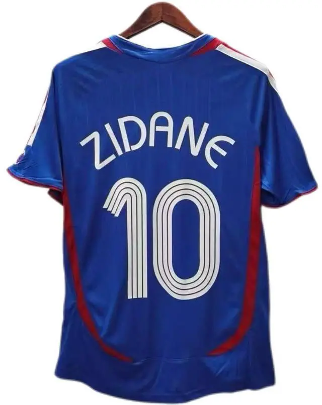 Zidane 2006 Retro Soccer Jersey for Men Fan Version Short Sleeve Football Shirt Blue S