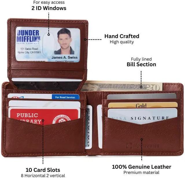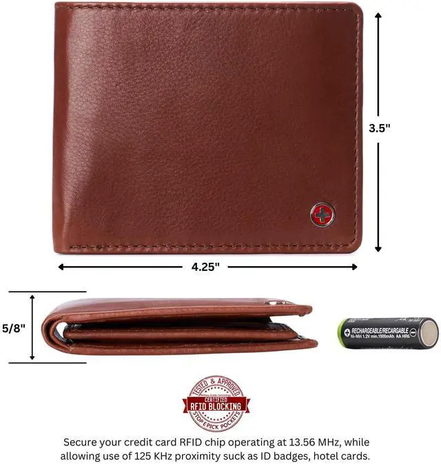 RFID Technology: Alpine Swiss Mens Wallet protects your information and identity with advanced RFID protection. Our wallet is designed to disrupt scanner signals, keeping your financial and personal data secure. Your security is our priority.