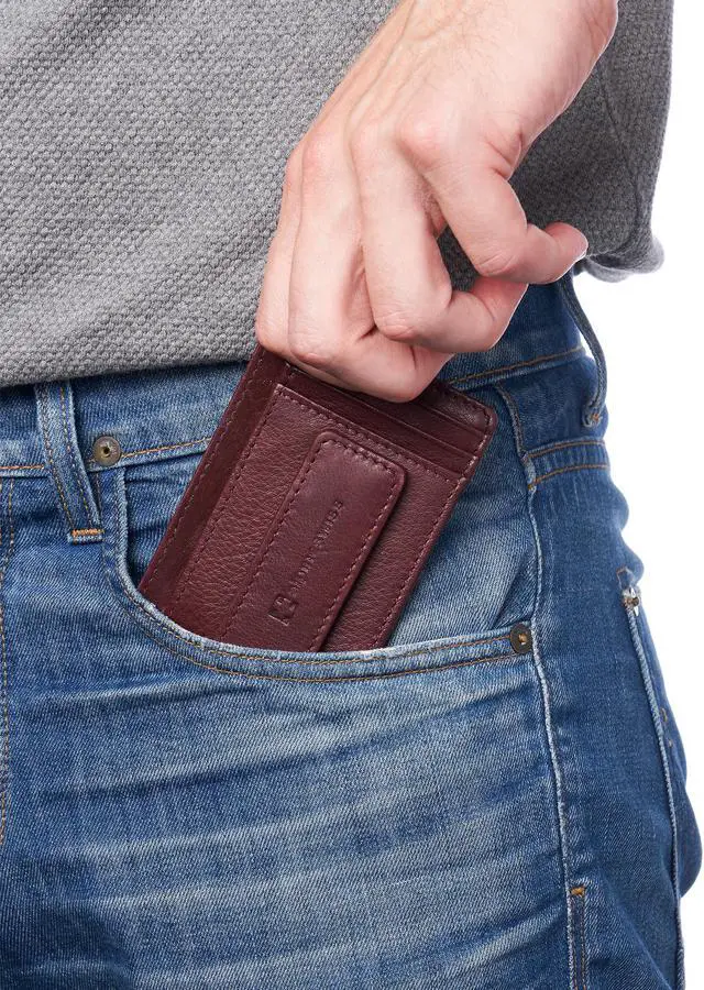ENHANCED MAGNETIC MONEY CLIP - Upgraded magnetic strength as of 2024 securely holds 6-10 folded bills with reliable grip. Crafted from genuine premium leather— not synthetic or bonded materials that often pose as real leather— breaks in beautifully over 2-3 weeks, softening for perfect card access while maintaining security. Compact 4 1/4"L x 3"W x 3/8"H" design eliminates back pocket bulk and discomfort. Perfect for professionals who value both style and functionality.