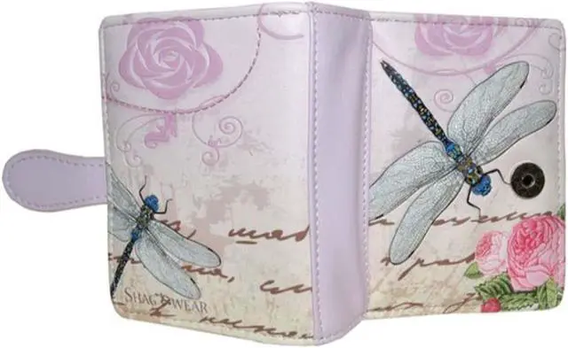 Dimensions: 4" x 4.5" X 1 Shagwear Vintage Dragonfly Small Pink Zipper Wallet