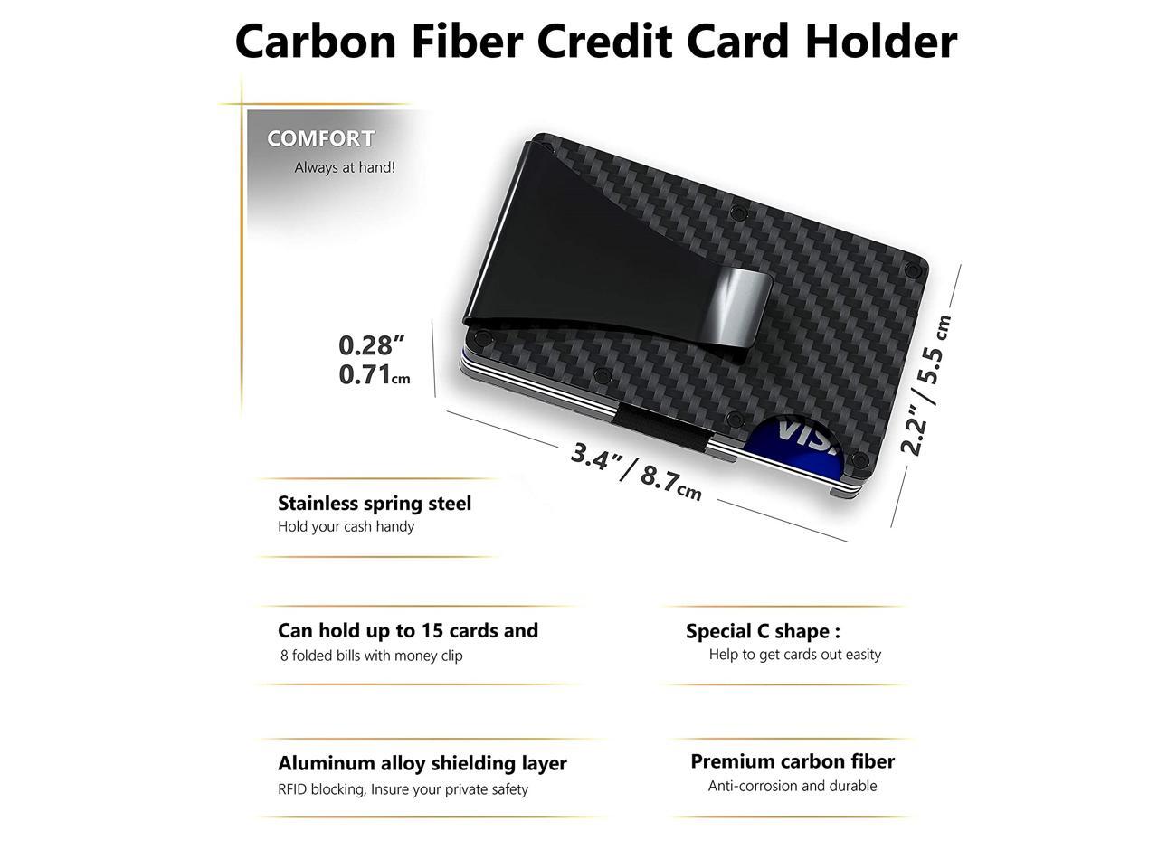 AUTENS Carbon Fiber Credit Card Holder New Design Man Wallet Minimalist RFID Blocking Slim Cardholder Metal Money Clip Wallet Slim And Thin Money Bag for Men