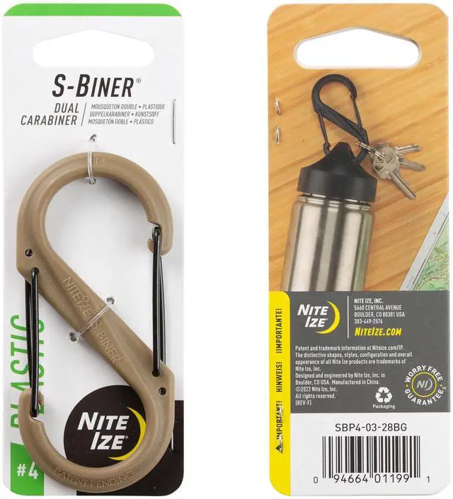 The iconic S-Biner design allows quick and easy attachment using its unique double-gated design. The durable and colorful plastic body with stainless steel gates is available in a variety of sizes creating a perfect way to hold, secure, and connect everything from keys to water bottles to gear.