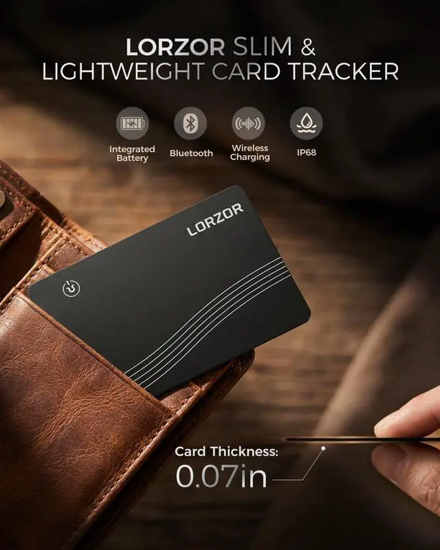 Ultra-Thin, Durable, and IP68 Waterproof: Measuring just 0.07 inches thick, the LORZOR Smart Card is IP68-rated for durability, offering protection against dust and water exposure. It can withstand submersion in 3.3 feet (1 meter) of water for 30 to 60 minutes. Whether its rain, spills, or outdoor adventures, this slim tracker is built to endure lifes challenges.