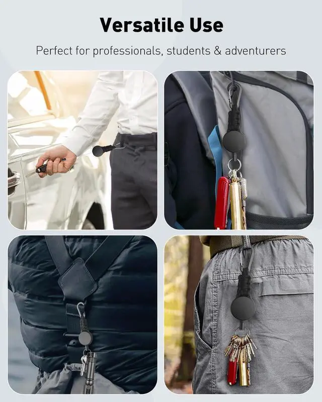 Convenient to Carry: Equipped with a zinc alloy carabiner with a smooth, scratch-proof coating, this retractable key holder clips securely to your pocket, belt loop, backpack, zipper or gear loop. Carry it comfortably without extra bulk