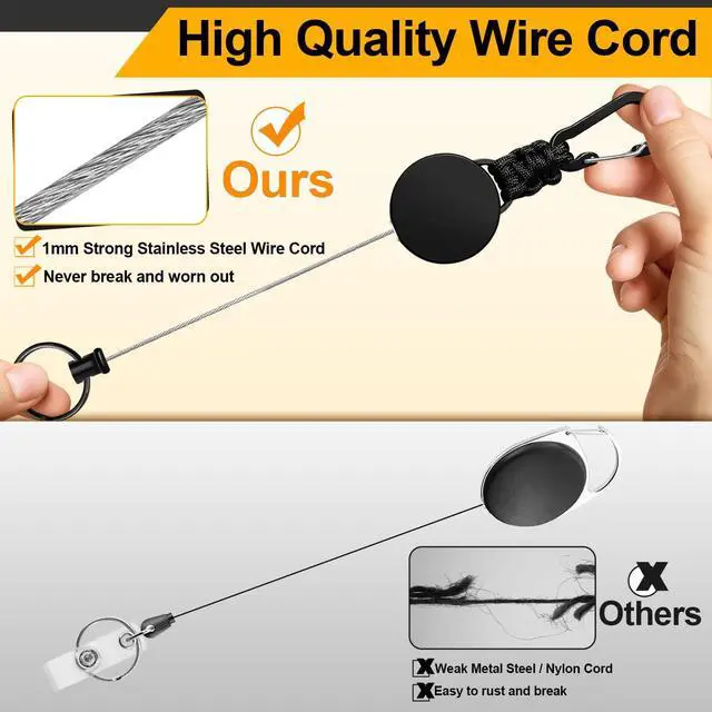 Strong & Durable: Retractable key ring with sturdy steel cable and built-in strong spring can withstand a load of 220 grams and over 100,000 stretches. Stretching of the wire rope is smooth and snag-free