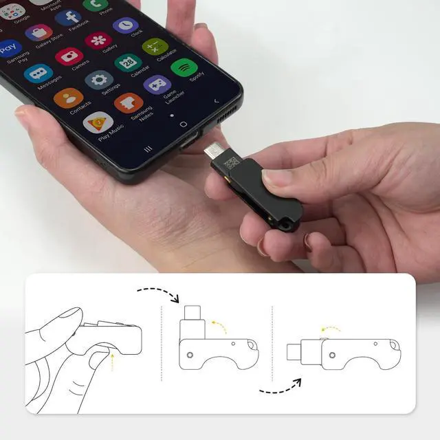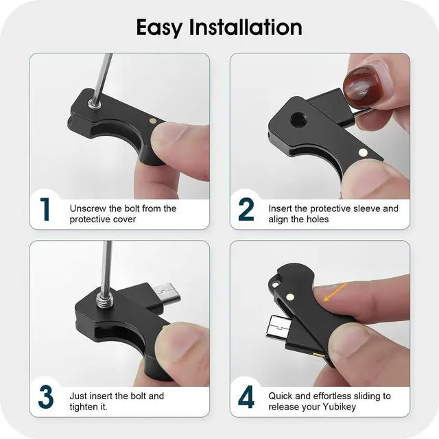 Flip Holder with Slide-Out Operation Flip-open design allows the YubiKey to slide out for use and fold back in when not in use, keeping the connector protected during everyday carry.
