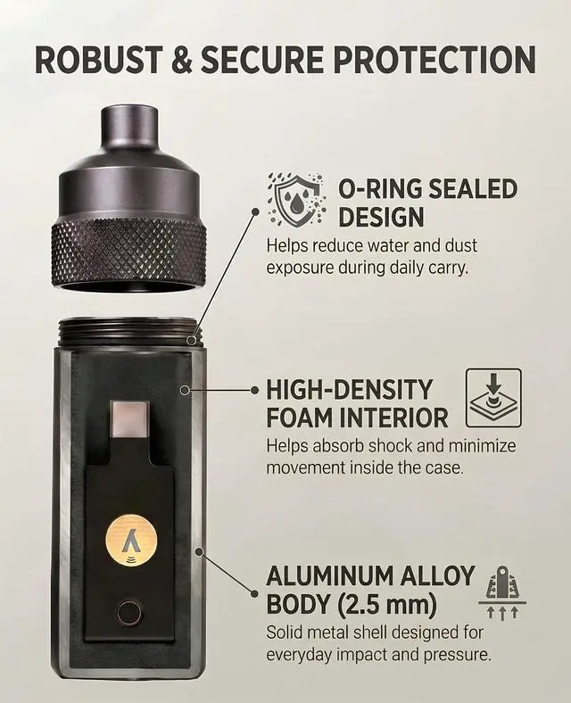 - Avoid Moisture & Dust: Store your Ledger or YubiKey in a dry, sealed case to help reduce exposure to moisture, dust, and debris during daily carry.