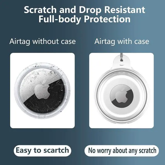 Scratch&Drop Resistant ProtectionFeaturing a high-performance TPU case, this protective case is made of soft liquid silicone and hard PC material, with a smooth and sturdy surface durable to better protect your Air Tag from scratches, scuffs, drops and damage in 360°. So you can keep track of whatever its attached to.