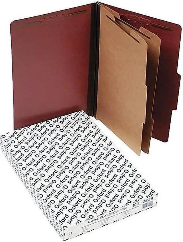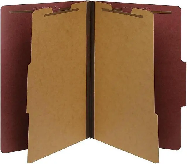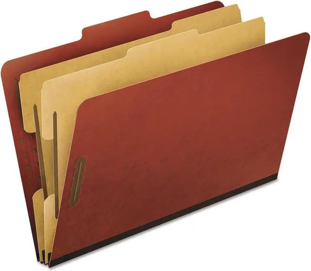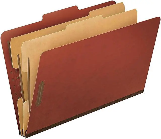Sturdy construction perfect for frequently accessed files. Acrylic-coated, moisture-resistant 25 pt. pressboard covers feature embossed 2" capacity fasteners. 17 pt. Kraft dividers feature two-way 1" capacity fasteners. Color-matched, reinforced rip proof tape gussets for expansion. 2/5 cut top tabs in right of center position. Acid-free. Six-SectionEmbedded fasteners. Folder Size: Legal; Total Number of Dividers: 2; Total Number of Fasteners: 6; Max Folder Expansion: 2".