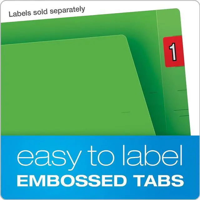 Pendaflex End tab folder in green color features double-ply reinforced tabs for extra strength, durability and has straight cut tabs with scored lines for easy label placement.