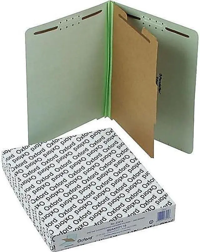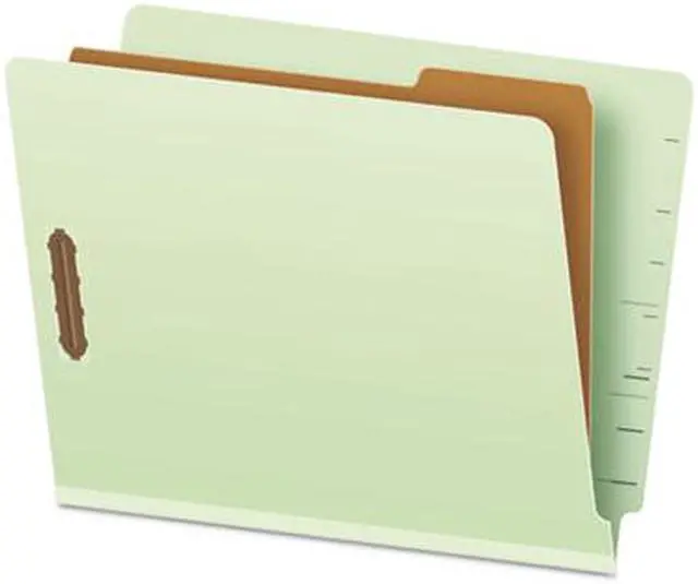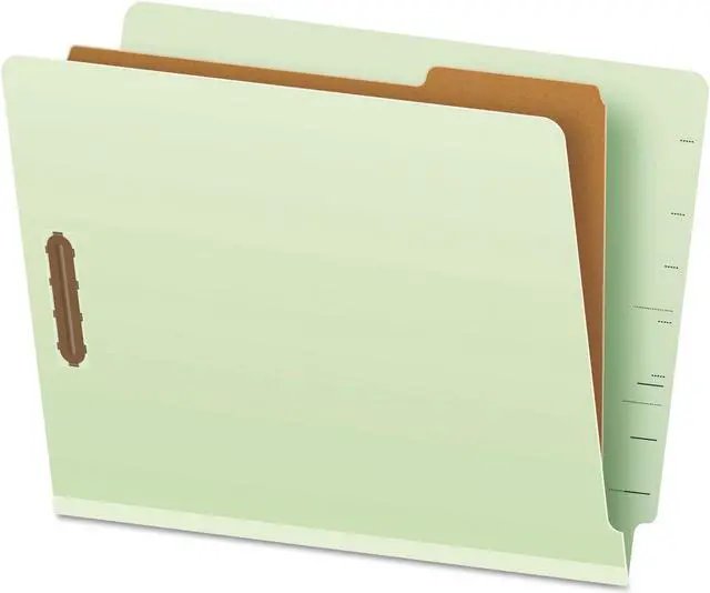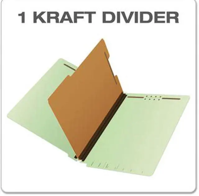 Get more from your shelf filing system. Folders feature extra heavy, 25 pt. pressboard covers with 2" capacity fasteners. Kraft tabbed divider with 1" capacity fasteners on each side. Reinforced rip-proof tape gussets deliver durable expansion. Straight cut tabs. Acid-free. Folder Size: Letter; Total Number of Dividers: 1; Total Number of Fasteners: 4; Max Folder Expansion: 1.75".