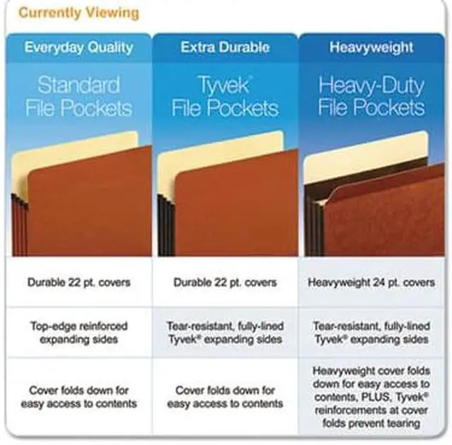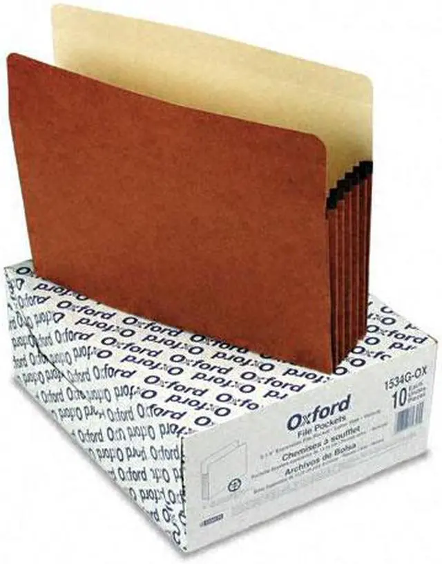 Standard Expanding File Pockets, 5.25" Expansion, Letter Size, Red Fiber, 10/Box