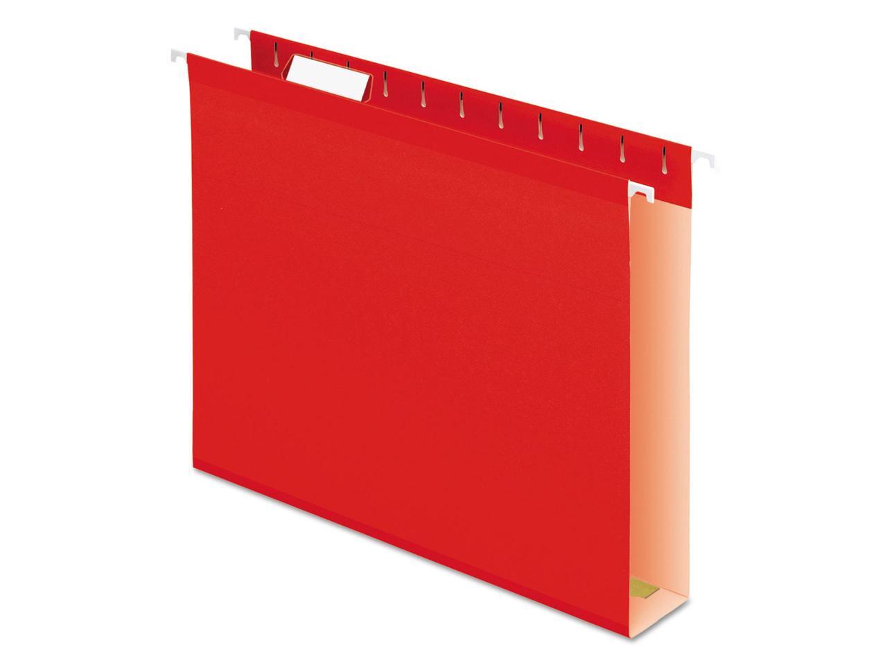 - Red extra-capacity hanging folders stand up to your largest, bulkiest files. Scored for 2" expansion to hold up to 400 sheets per folder.