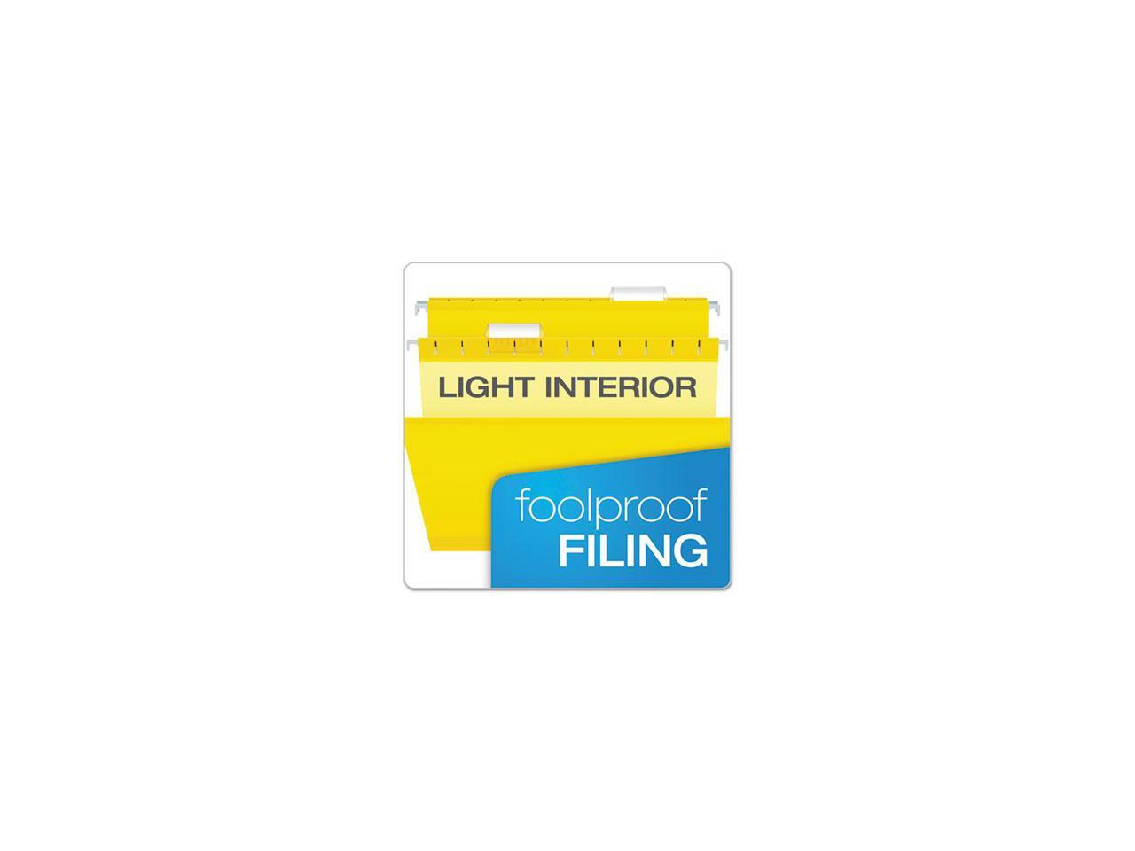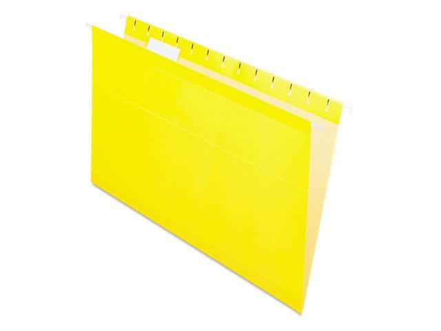 Yellow paper stock reinforced hanging folders for general or color-coded filing. Hanging file box fits in a file drawer or desktop filing system. Made in the USA.