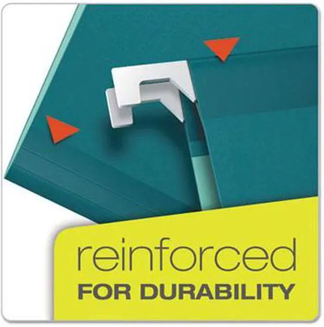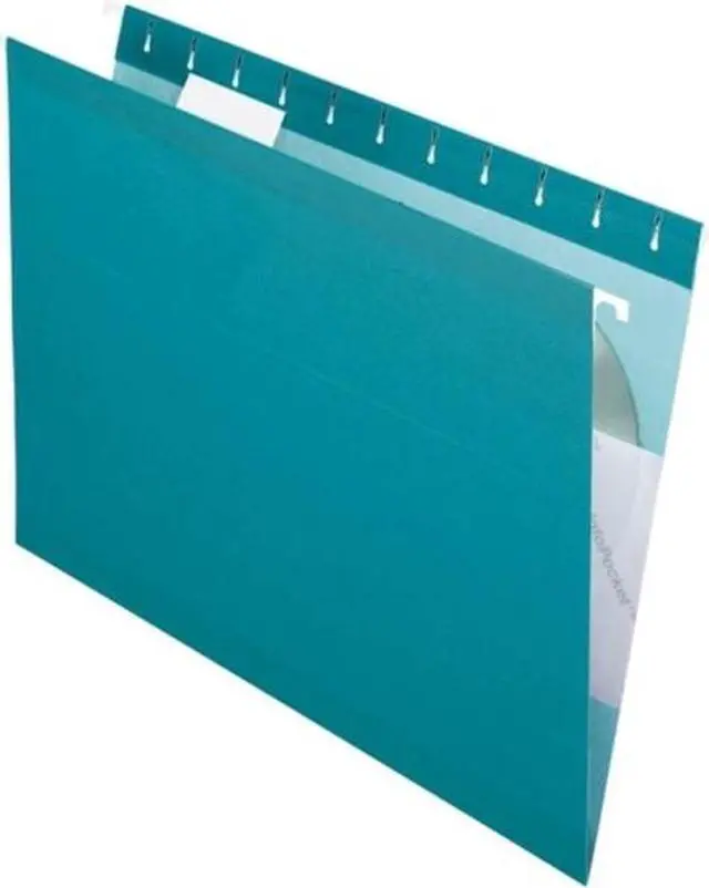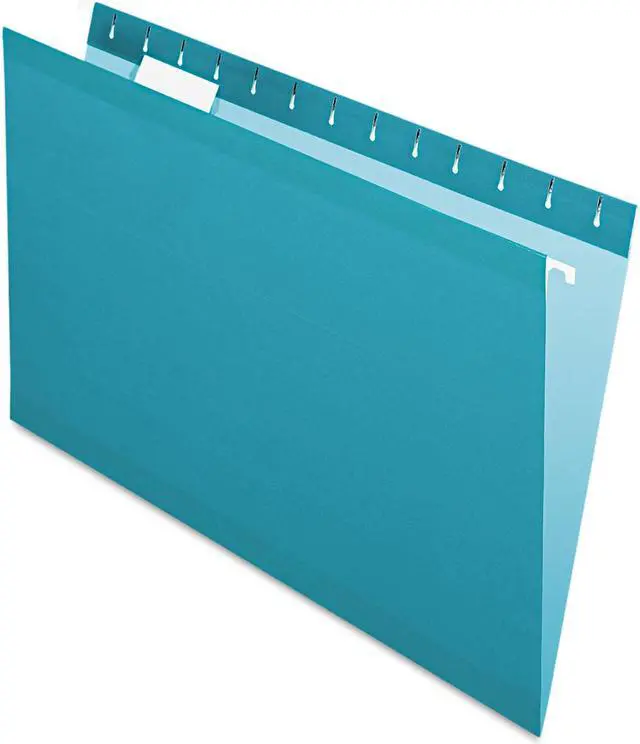 • Colored reinforced hanging file folders with polylaminate reinforced wear points, letter size, printer-ready inserts and 1/5 cut plastic tabs. Acid-free. Color(s): Teal.