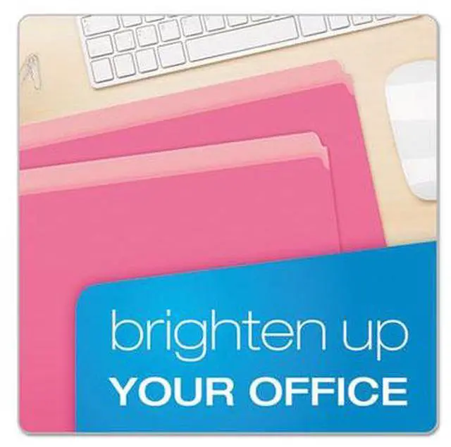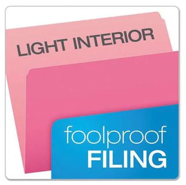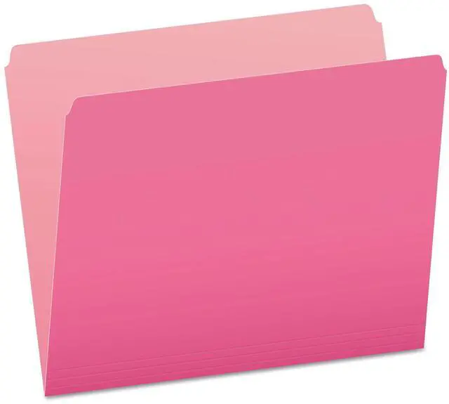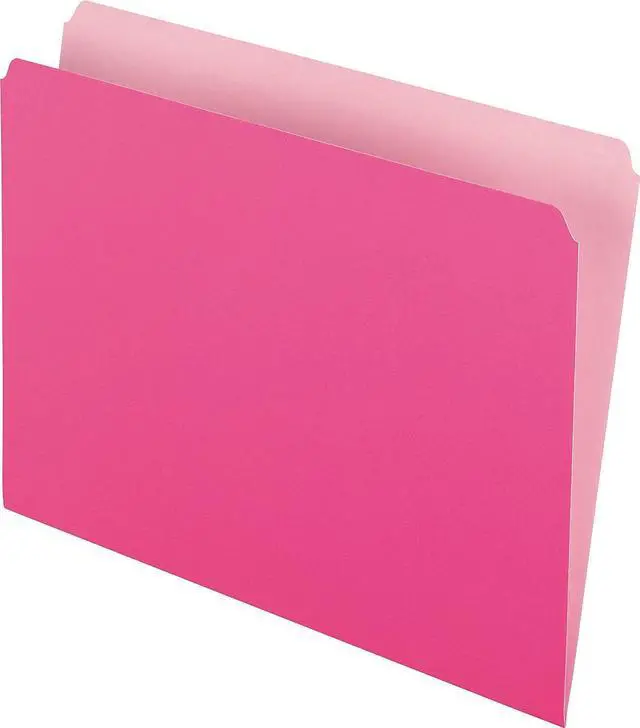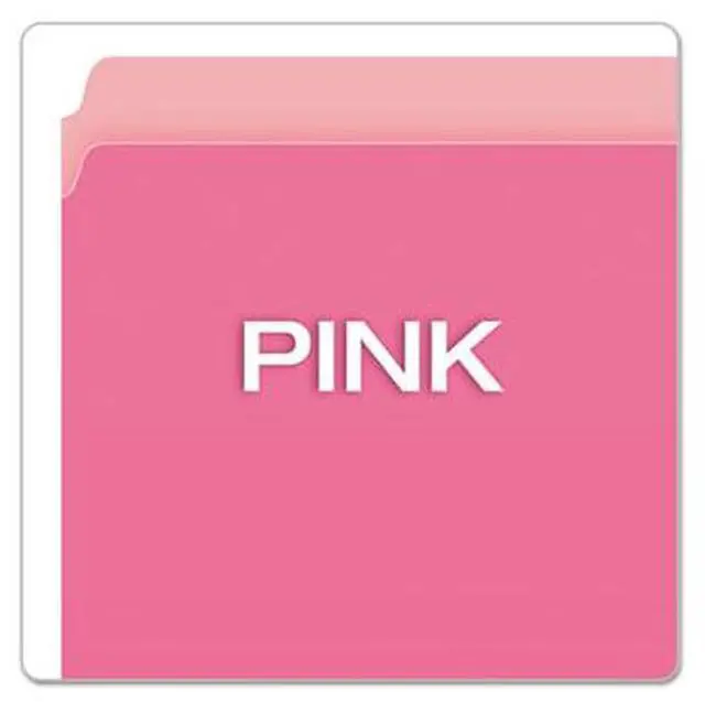 Two-tone color reverses to double the number of available colors. Various bright colors make color-coding easy. Interior is a lighter shade than exterior making top tabs easier to see, preventing misfiling. 11 pt. stock. File Folder Size Type: Letter; File Folder Color: Pink/Light Pink; Color Family: Pink; File Folder Material: 11-pt Stock.