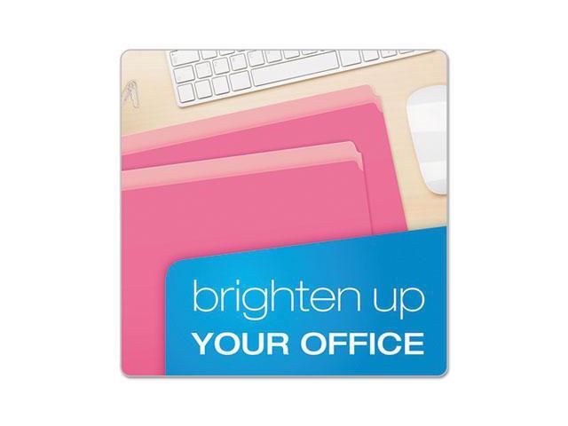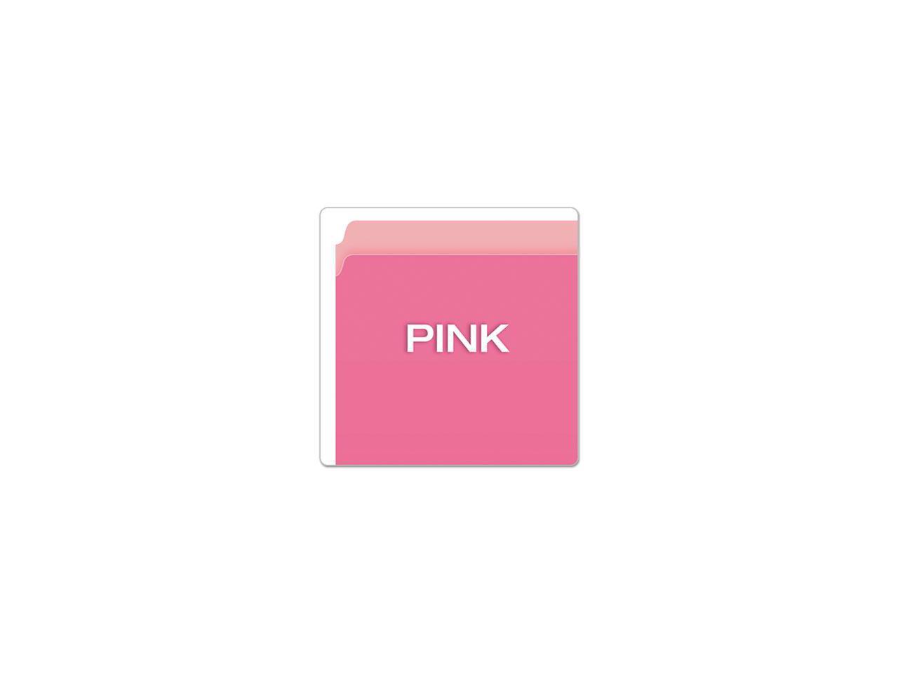 11 pt. stock top tab file folders with reversible two-tone color. Color(s): Pink/Light Pink.
