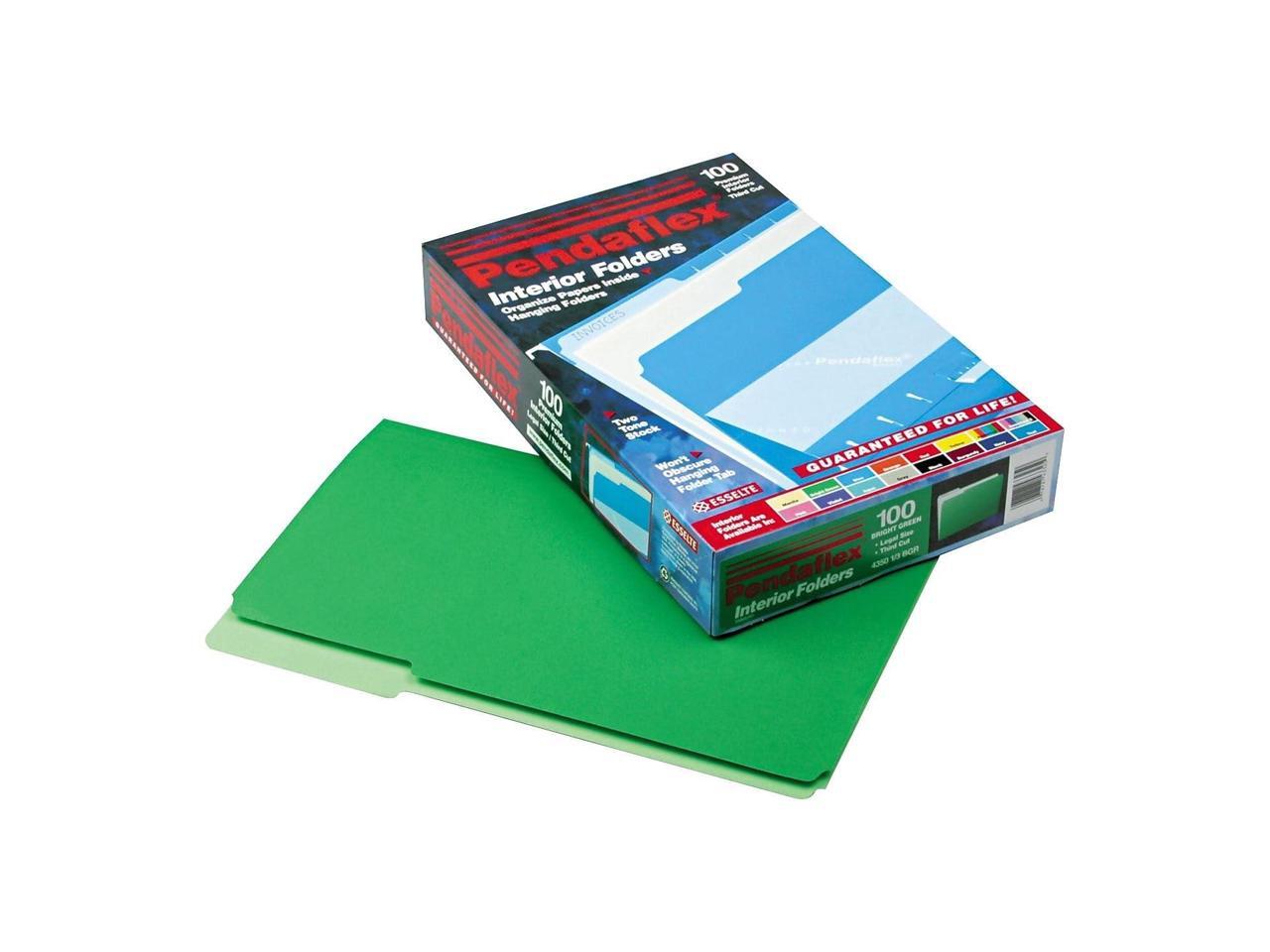 Pendaflex Interior File Folders 1/3 Cut Top Tab Legal Green 100/Box 435013BGR