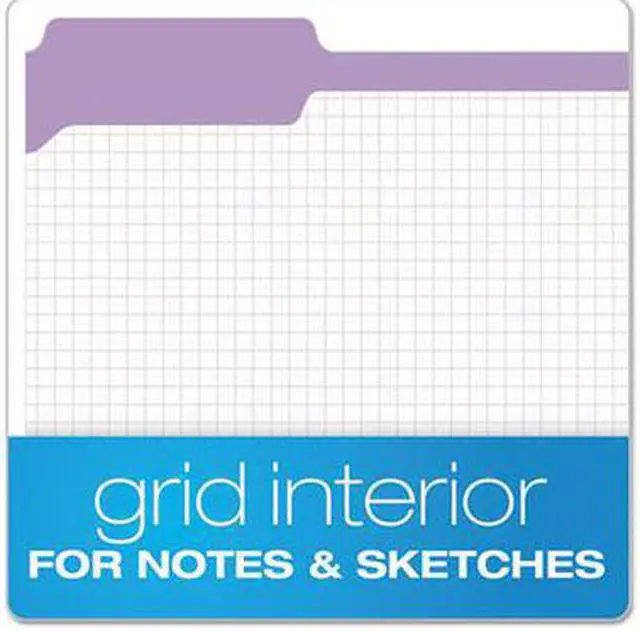 - Colored letter-size file folders have a preprinted interior grid for notes, double-ply reinforced top tabs and folder tops, and are scored for 3/4" expansion.