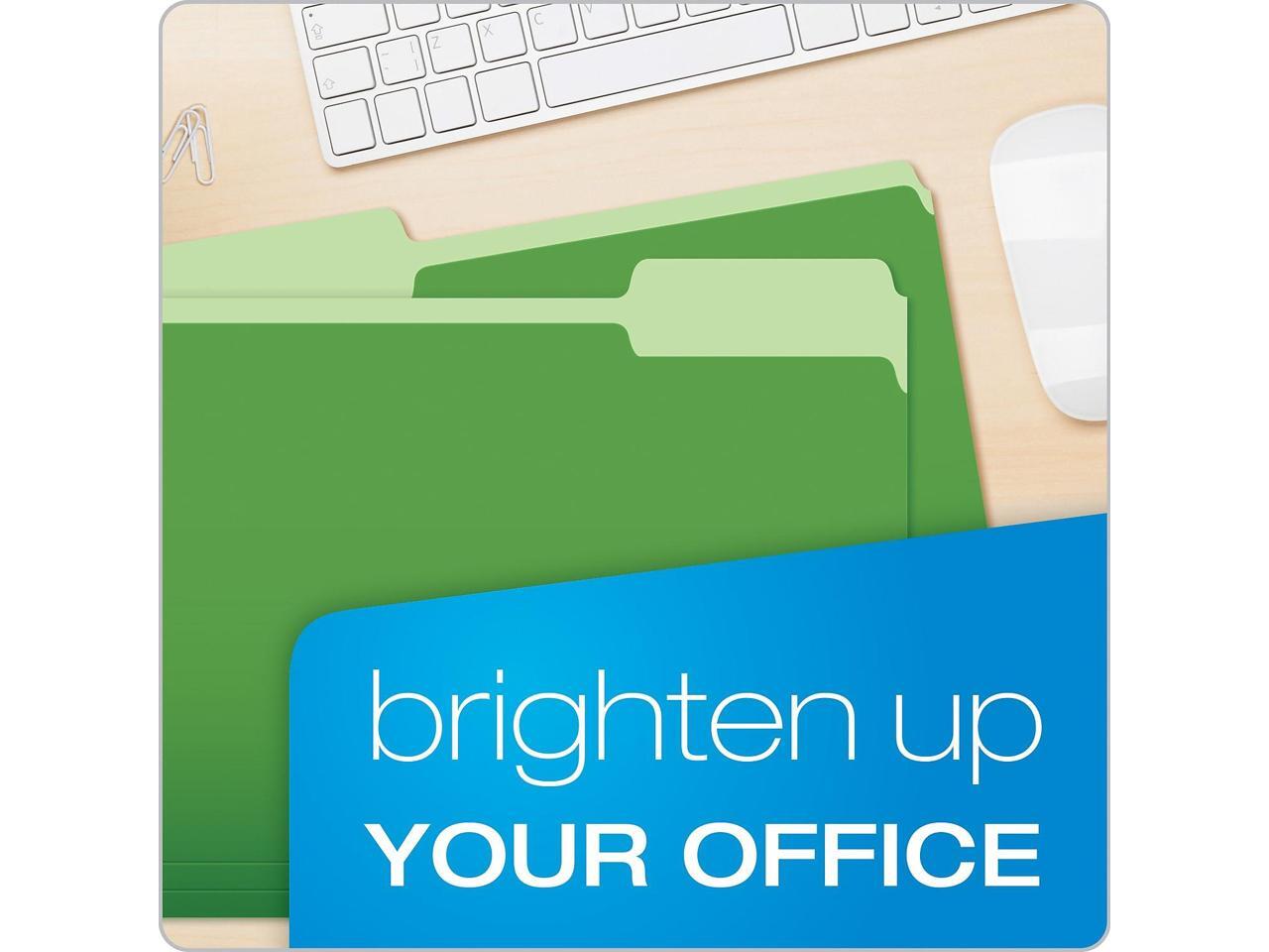 - Package Includes: 100 folders. Color Family: Green. Perfect for subdividing records within a hanging folder. Sustainable forestry initiative.