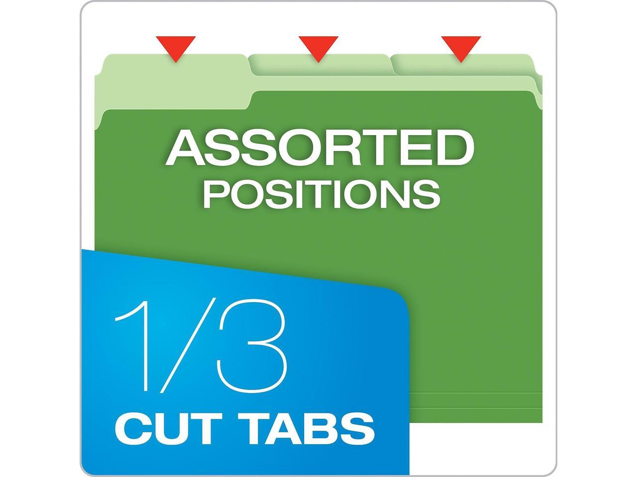 - Interior file folders with 1/3 cut top tabs in assorted positions that will not obscure hanging file tabs. Paper Size: Letter. File Folder Material: Paper Stock. Color-matched to penda flex hanging folders, creating a well organized and coordinated way to keep track of project records. Made in the USA.