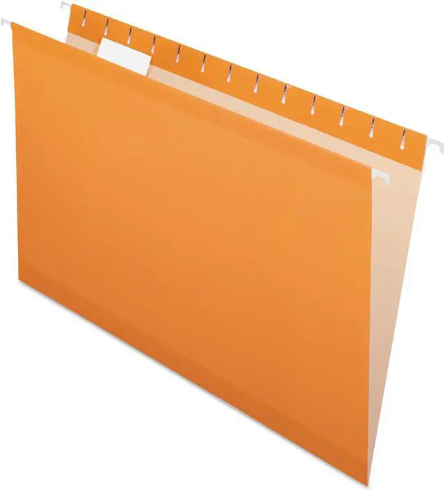 Use color to simplify filing: categorize subjects by color and count on the coordinating, lighter interior color to help prevent misfiles. Now includes letter size, printer-ready inserts to use with clear tabs (included). Folders feature polylaminate at all critical points. Exceptional tear and fold strength. Folder Size Type: Legal; Folder Color: Orange; Color Family: Orange; Folder Material: 11-pt Stock.