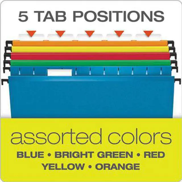 Color-code your filing system easily with these Pendaflex SureHook assorted-color letter-size 1/5-cut reinforced extra-capacity hanging folders.