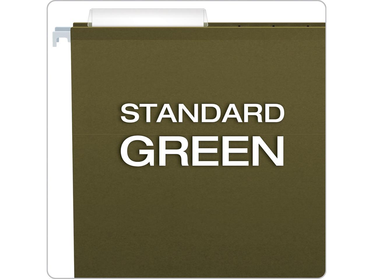 - Green reinforced paper stock hanging folders for general or color-coded filing. Hanging file box fits in a file drawer or desktop filing system. Made in the USA.