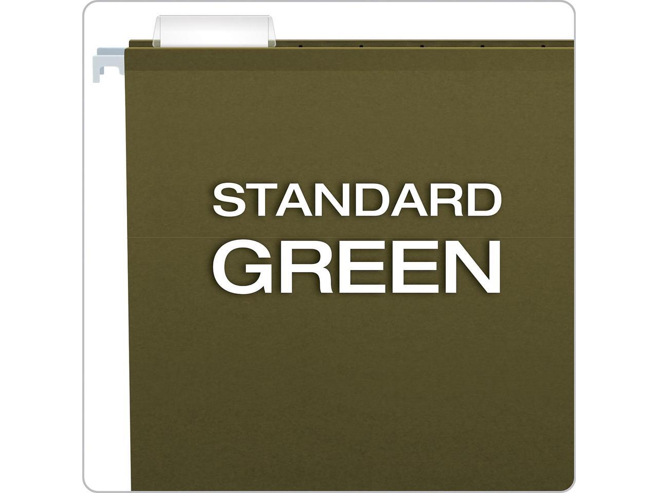 - Green reinforced paper stock hanging folders for general or color-coded filing. Hanging file box fits in a file drawer or desktop filing system. Made in the USA.