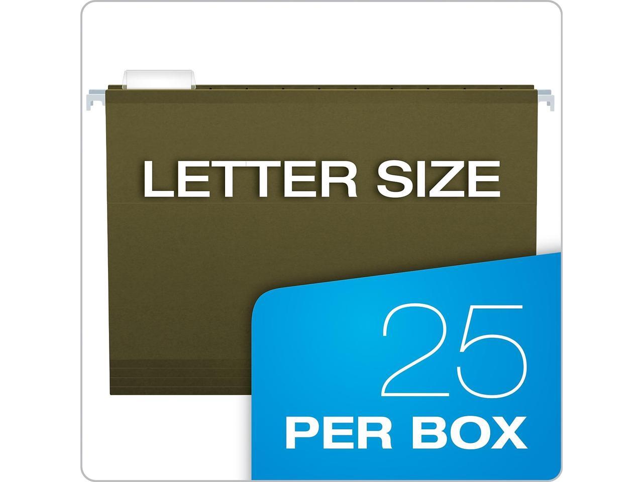 - Accommodates letter-size papers and files. Contains 25 file folders per box.